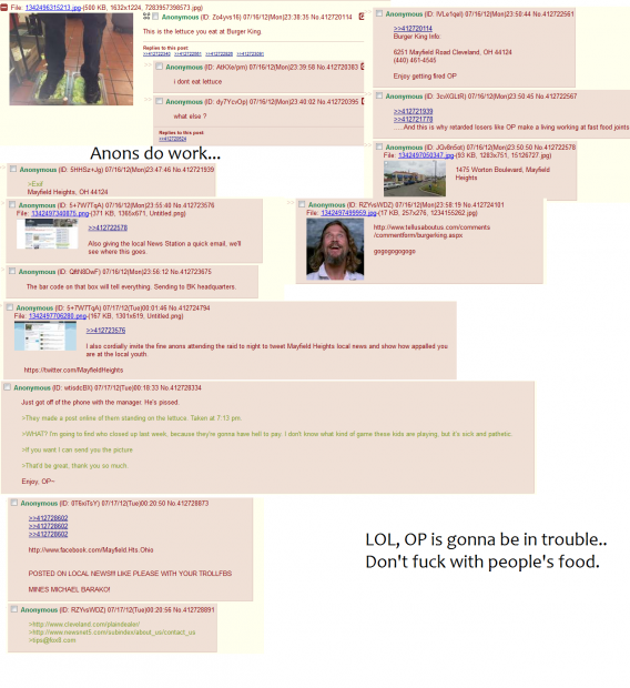 O 23:50 ktoś inny podał adres Burger Kinga, w którym wykonano zdjęcie życząc przy okazji miłego bezrobocia. Jeszcze przed północą skontaktowano się z mediami i wysłano informację z załączonym zdjęciem do Burger Kinga przez formularz kontaktowy na ich stronie. Szef autora fotki dostał telefon od jednego z użytkowników, który poinformował go o zajściu. Nie krył rozgoryczenia mówiąc: "Dowiem się, kto zrobił to zdjęcie, bo muszą za to zapłacić! Nie wiem w co grają te dzieciaki, ale to chore i żałosne!"