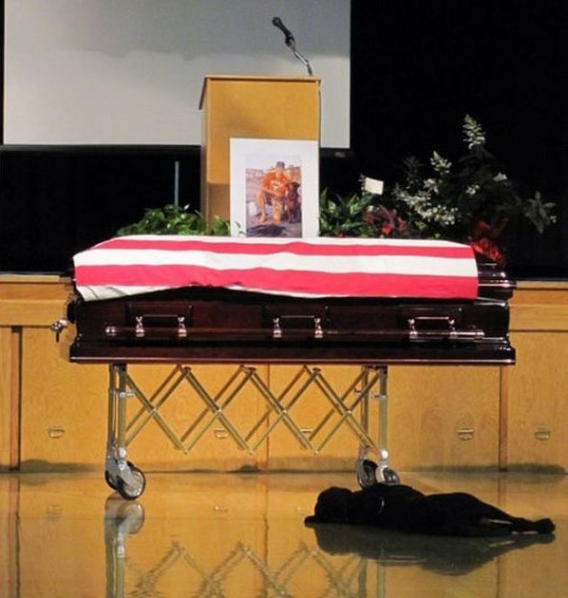Jon Tumilson, żołnierz Navy Seals zginął w Afganistanie. Jego labrador przez cały pogrzeb leżał obok trumny.