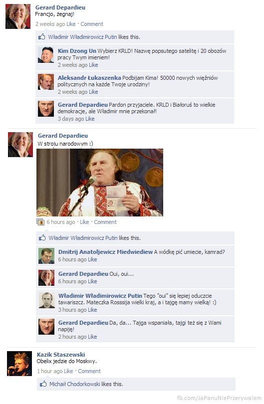 Galowie zwykle zamykają się w swojej wiosce i dzięki magicznemu napojowi odpierają ataki najeźdźców. Odtwórca głównej roli Obeliksa, Gerard Depardieu postanowił przeprowadzić się do Rosji i tam żłopać wszelkie napoje nie bacząc na wysokie podatki we Francji. Dzięki specjalnemu dekretowi Władimira Putina aktor otrzymał nawet obywatelstwo rosyjskie. Internauci jak zwykle byli bezlitośni.