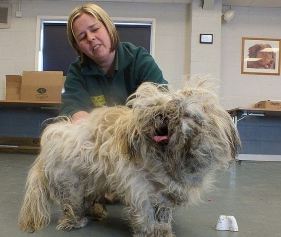 Tego biednego psiaka znaleziono w kiepskim stanie gdy błąkał się po Leeds (Wielka Brytania). Ogolenie brudnej, za długiej sierści zmieniło go nie do poznania. Spójrzcie!