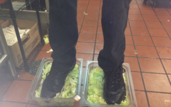 "Burger King Corp. zostało niedawno poinformowane o zdjęciu zamieszczonym na jednym z portali społecznościowym, które przypuszczalnie ukazywało jednego z pracowników restauracji łamiącego surowe przepisy postępowania z jedzeniem. Bezpieczeństwo jedzenia jest najwyższym priorytetem restauracji Burger King, a firma nie toleruje łamania tych zasad.