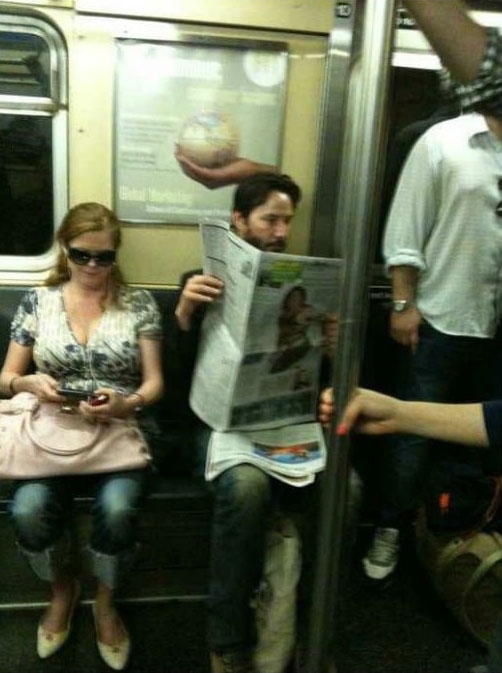 Ten gość, który czyta gazetę na zdjęciu to Keanu Reeves, znany przede wszystkim jako odtwórca głównej roli w kultowym Matriksie. Zapewne nie wiecie, że historia aktora jest bardzo interesująca - zapewne byście się tego nie spodziewali...