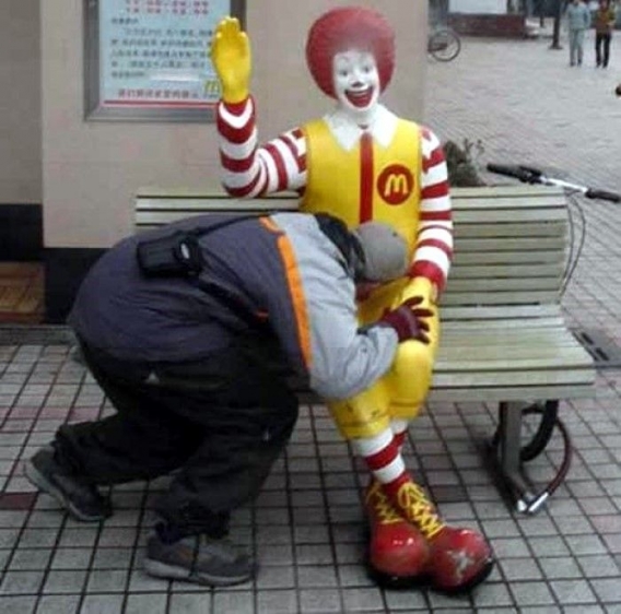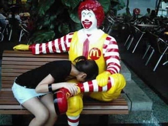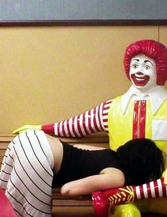 Klaun Ronald przysiadający sobie na ławeczkach przed McDonaldem przyciąga nie tylko dzieci. Zdjęcia lubią sobie robić także ci mniej grzeczni i bardziej dorośli - przekonajcie się sami!