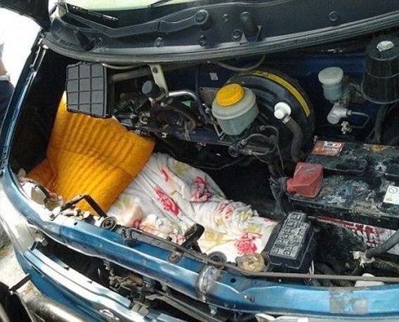 W tym samochodzie zmodyfikowano nieco silnik. Tylko co znajduje się pod kocem widocznym na zdjęciu? Ciekawi? Czytajcie dalej!